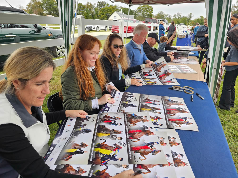 The show was organized by Mary Orr, Evan Orr, Meredith Ross, Christine Thomas, Abigail Jones, Lauren Blue, Nicole Scott, Vickie Byrd, Karly Morgan, and many volunteers from the High Caliber Stables family. The Hot Shots were proud to host many special guests for the occasion, many of whom autographed posters for fans. Special guests included ASHBA President Smith Lilly, ASHBA Executive Director Sara Mayer, former ASHBA President Allen Bosworth, William Woods University President Romaine Seguin, world champion equestrian and philanthropist Ali DeGray, William Woods Saddleseat Director Missy Smith, World’s Grand Champion trainer Tiffany Wheeler, World’s Grand Champion owners Burt Honaker and Miriam Hirshon, USEF and WCHS judge Allison Deardorff, world champion equestrian Dr. Owen Weaver, legendary photographer Avis Girdler, and more.